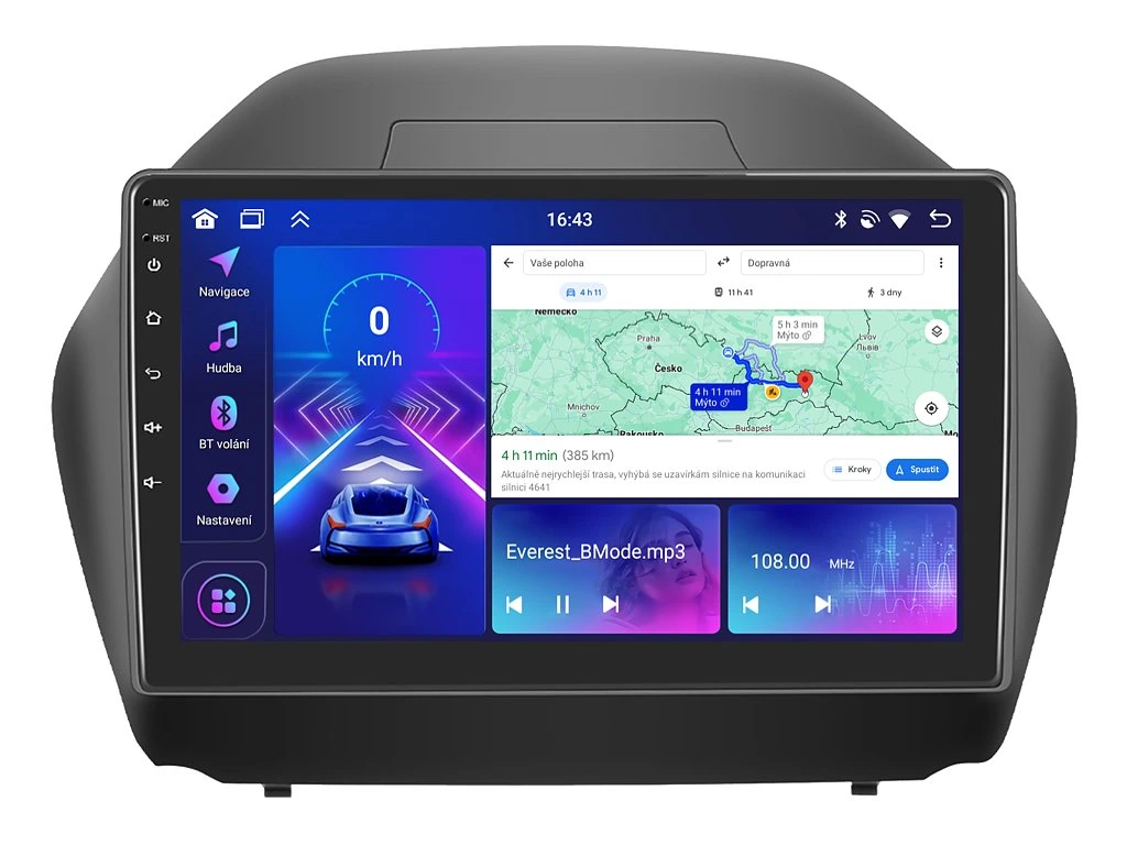 Zažijte každý okamžik ve vašem Hyundai ix35 s neuvěřitelným zvukem díky 2DIN autorádiu Bmode BEX36. Na první pohled upoutá moderní technologie CarPlay a AndroidAuto, které umožňují bezproblémové zrcadlení a ovládání telefonu na displeji autorádia. Jeho 10,1 palcová dotyková obrazovka zachycuje každý detail v HD rozlišení, což potěší spolucestující při cestování. Vysoký výkon zajistí osmijádrový procesor s podporou 6 GB RAM. Náročný posluchač jistě ocení funkci DSP neboli digitální signálový procesor, který násobně zvyšuje kvalitu reprodukce. Funkce Bluetooth umožní pohodlné a bezpečné handsfree volání a vyřizování důležitých hovorů. Pokud si občas nevíte rady se správnou cestou, můžete využít zabudovaného GPS modulu, který Vás přivede na tu správnou cestu. Pomocí Google obchodu si můžete stáhnout svou oblíbenou GPS navigaci. Operační systém Android 15 se postará o ovládání mnoha oblíbených aplikací. Pro bezpečné couvání můžete snadno propojit autorádio s parkovací kamerou. Autorádio nabízí možnost výběru z různých jazyků, které obsahují přeloženou základní část systému do českého jazyka.