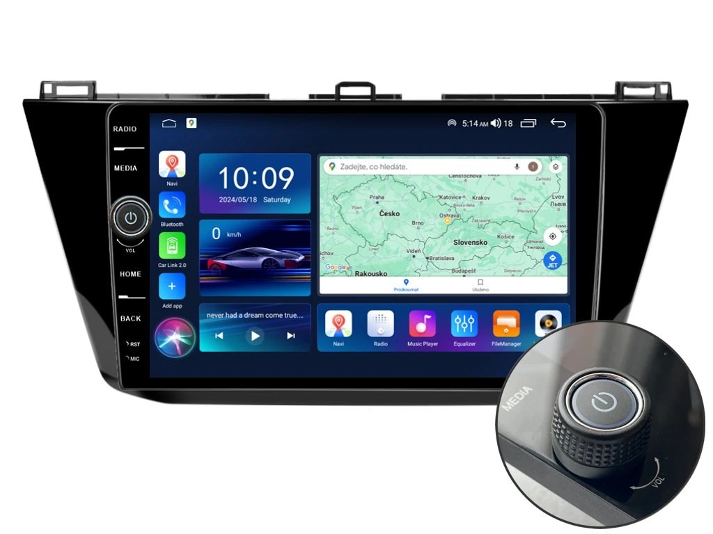 2DIN autorádio Everest EVE16 pro Volkswagen Tiguan II nastavuje nové standardy ve světě multimediálních technologií. Na první pohled zaujme svou 10,1 palcovou QLED obrazovkou s neuvěřitelným rozlišením 1280 x 800. Lze na ní sledovat video i prohlížet fotografie s podporou Android aplikacemi. O špičkový výkon a plynulý běh aplikací se stará stabilní software s 8-jádrovým procesorem ve spolupráci se 6 GB RAM. Náročný posluchač jistě ocení funkci DSP neboli digitální signálový procesor, který násobně zvyšuje kvalitu reprodukce. Za pomocí 4G modulu se z Vašeho autorádia stane smartphone, ze kterého můžete hravě odesílat SMS zprávy, využívat online GPS navigaci s aktuální dopravní situací či využívat další cenné funkce. Váš mobilní telefon již zůstane navždy v kapse díky bezdrátové funkci CarPlay a Android Auto. Díky operačnímu systému Android 14 budete mít ve svém automobilu kompletní multimediální centrum přeplněné funkcemi a aplikacemi. Pohled z parkovací kamery Vám umožní bezpečné a ničím nerušené couvání. Autorádio nabízí možnost výběru z různých jazyků, které obsahují přeloženou základní část systému do českého jazyka.