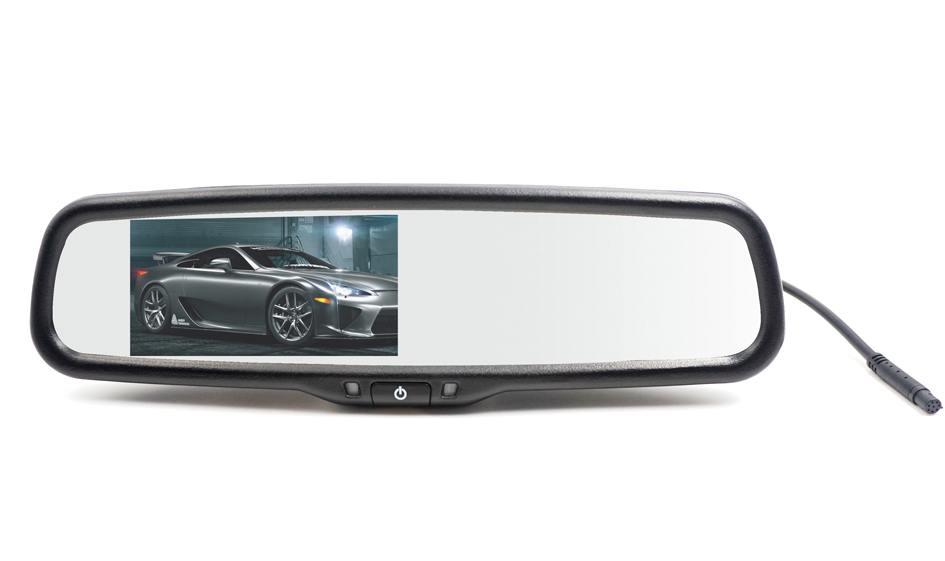 LCD monitor 4,3“ v elegantním provedení určený k nahrazení originál zrcátka ve voze s funkcí automatického ztmavení (autodimming).