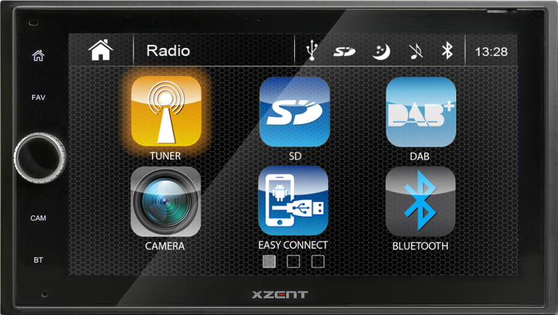 Vedle FM RDS tuneru nabízí XZENT také dva USB 2.0 porty. První port slouží k připojení USB flash disku k přehrávání hudby či videí, ale také smartphonů se systémem Android: funkce Easy Connect dokáže zobrazit obsah displeje smartphonu a aplikace v telefonu lze ovládat z dotykové obrazovky moniceiveru. Druhý USB port podporuje funkci „Made for iPod/iPhone“ a slouží k připojení zařízení Apple se systémem iOS. X-222 má dva kamerové vstupy (RCA/CVBS) se spínaným napájením a automatickým ovládáním/přepínáním obrazu. Tlačítko CAM na čelním panelu umožňuje přepínat mezi přední a/nebo zadní kamerou podle potřeby také ručně. Vstupy pro video z kamery (CVBS), nabízejí režimy automatického přepínání a podporují tak nastavení kamerového signálu přední/zadní nebo zadní/zadní. Výkonný modul Bluetooth přináší streamování hudby A2DP, rychlou synchronizaci telefonního seznamu a možnost rychlého vytáčení oblíbených kontaktů.