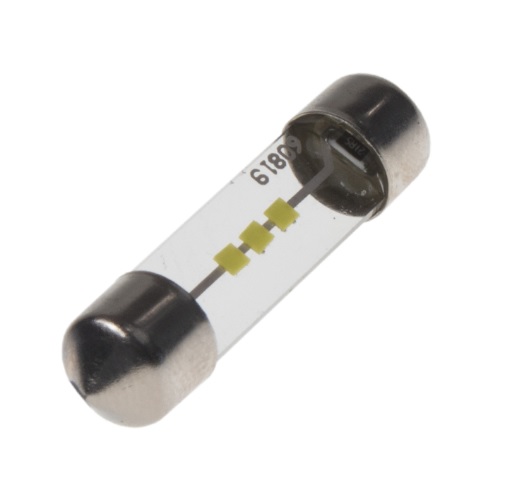 Náhradní LED žárovka s paticí SUFIT, 3x LED typu CSP, vhodná do parkovacích světel u novějších vozidel. Speciální technologie umístění LED čipů na skleněné desce zajišťuje nižší zahřívání a vyšší spolehlivost. Tato technologie umístění LED také slouží k simulaci vlákna v halogenových žárovech - vytváření těsně přizpůsobeného stylu paprsku. Díky teplotě světla 6000 K jsou LED žárovky ideálním doplňkem do reflektorů s xenonovými výbojkami, kde žluté světlo obyčejné žárovky působí rušivě.
