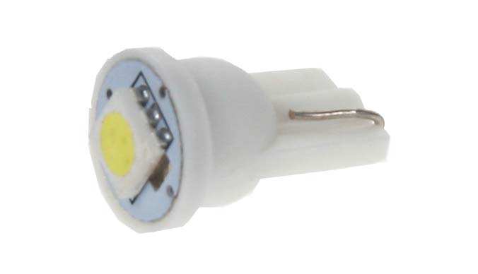 Náhradní LED žárovka s paticí T10, bílá, 1x 3-čipová SMD LED dioda, napájecí napětí 12V, vhodná do parkovacích světel u novějších vozidel, odpovídá žárovce "celosklo" W5W. Svítivost LED diody je podobná jako u žárovky 12V 5W. Díky teplotě světla 8000 K jsou LED žárovky ideálním doplňkem do reflektorů s xenonovými výbojkami, kde žluté světlo obyčejné žárovky působí rušivě.